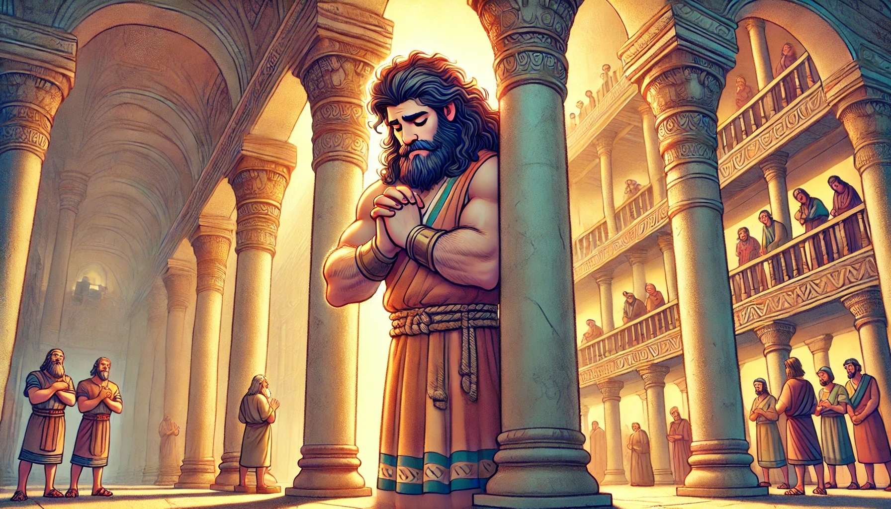 Eines Tages feierten die Philister ein riesiges Fest 🎉 in einem großen Tempel.