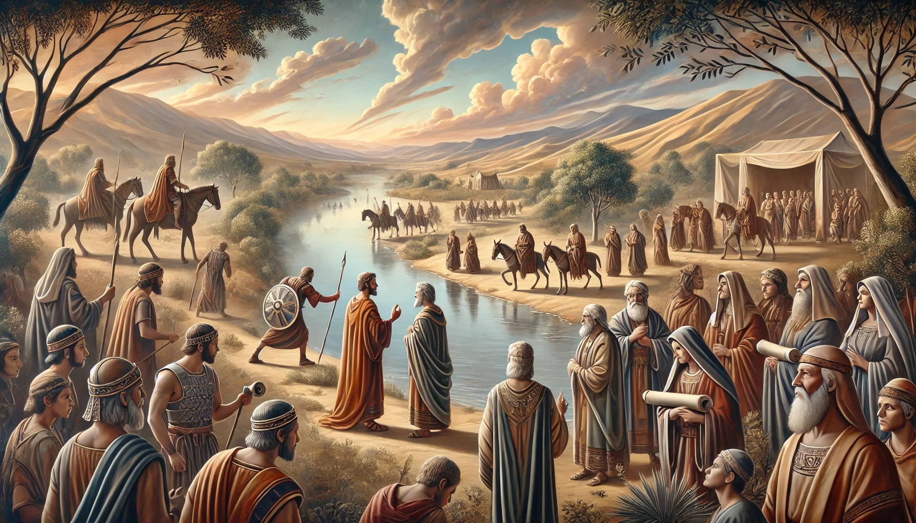 In der Erzählung folgt eine der bekanntesten Szenen der Bibel: das „Schibbolet“-Erkennungswort. Ein einfaches Wort, das Freund von Feind unterscheidet. Die Ephraimiter können den Laut „sch“ nicht sprechen – und diese sprachliche Feinheit wird zum Todesurteil für Tausende.