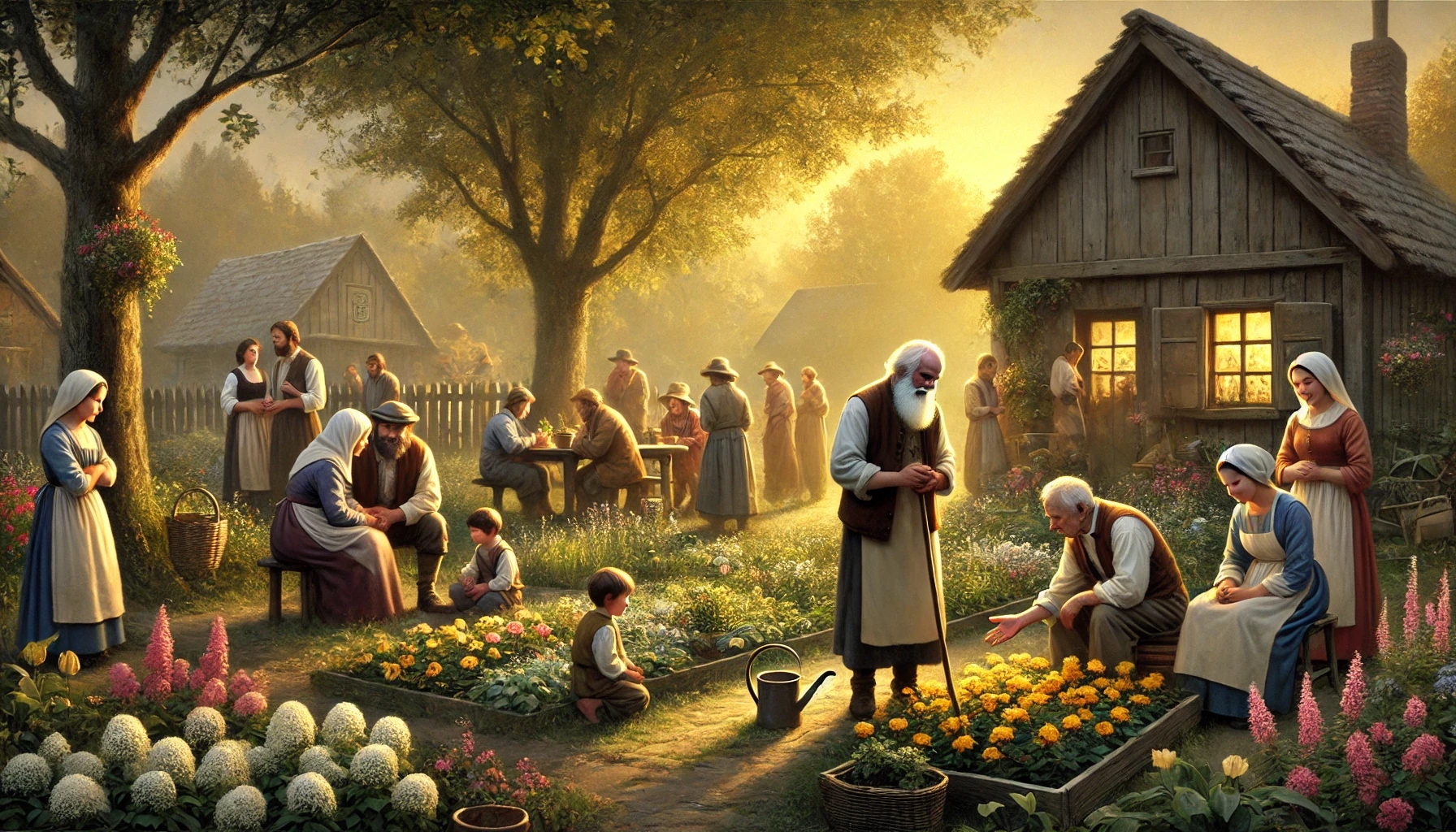 In einem kleinen Dorf lebte ein bescheidener Gärtner namens Jakob. Er hatte nie viel Aufsehen um sich gemacht. Sein Garten war nicht der größte, seine Kleidung schlicht, und seine Worte einfach. Doch eines fiel allen auf: Wo Jakob war, war Friede. Menschen kamen zu ihm, nicht nur wegen Blumen, sondern um Trost zu finden.