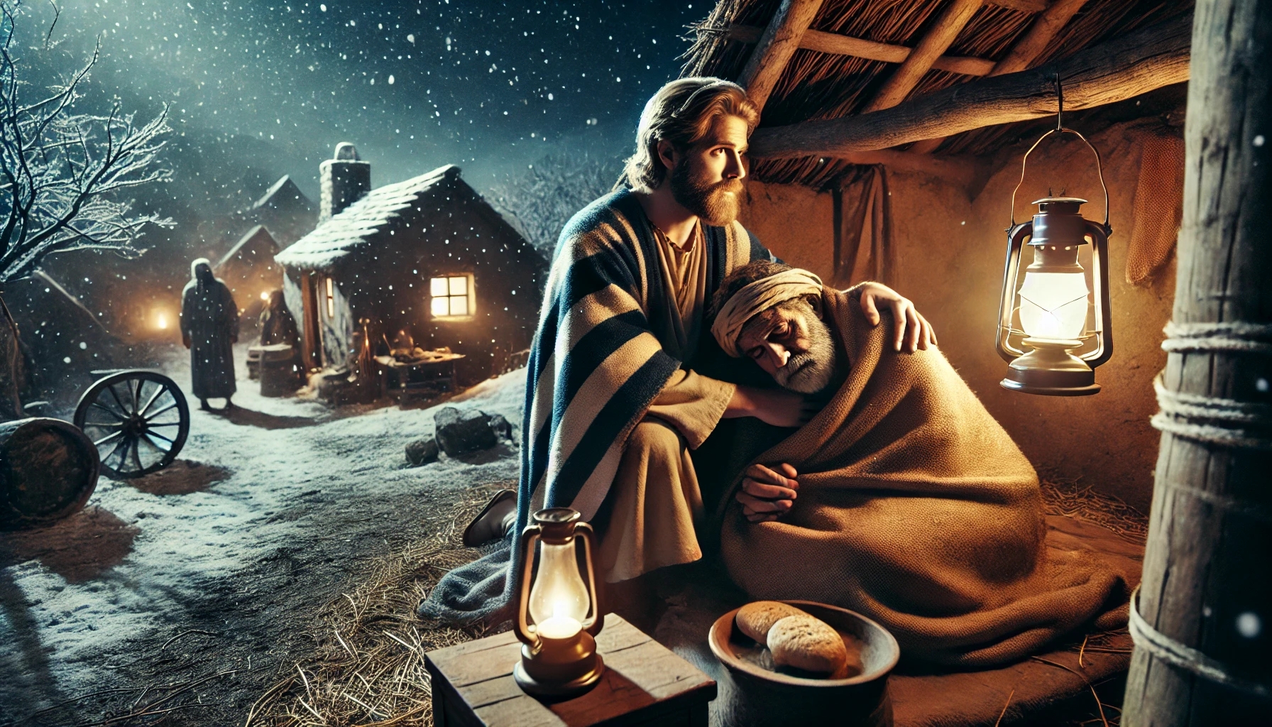Samuel wachte schweißgebadet auf. Ohne zu zögern zog er sich an, nahm eine Decke, Brot, Wasser und ein Fläschchen Öl und machte sich in der Dunkelheit auf den Weg zur Hütte. Als er Jakob fand, war dieser kaum noch bei Bewusstsein. Samuel pflegte ihn, brachte ihn zu sich nach Hause, und wochenlang kümmerte er sich um ihn – so, wie es niemand zuvor getan hatte.